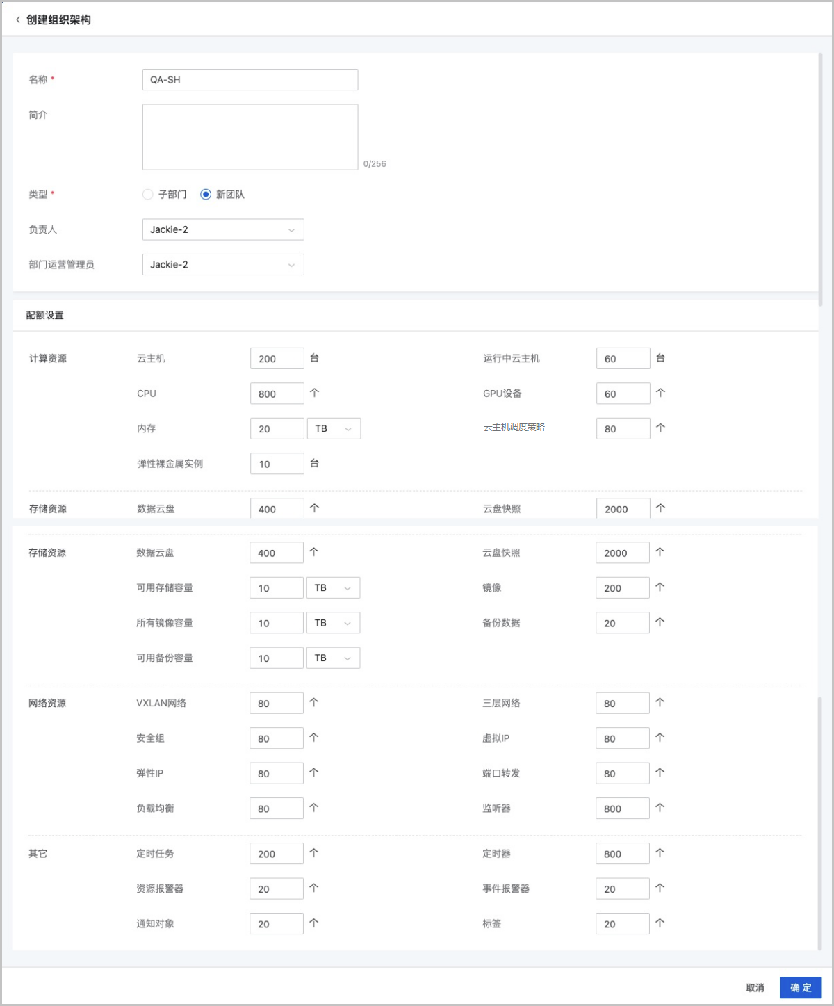 ZStack Cloud组织管理为用户提供组织架构管理,以及基于项目的资源访问控制、工单管理、独立区域管理等功能。通过组织架构的划分,提供和行政部门一样的管理效果,最大程度上减轻管理的成本。