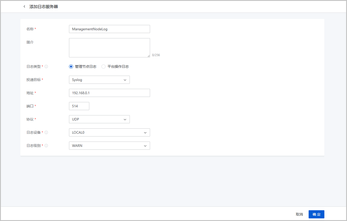 日志服务器:添加日志服务器至云平台,收集管理节点或平台操作日志,可用于操作追溯和问题定位,提高云平台运维效率。