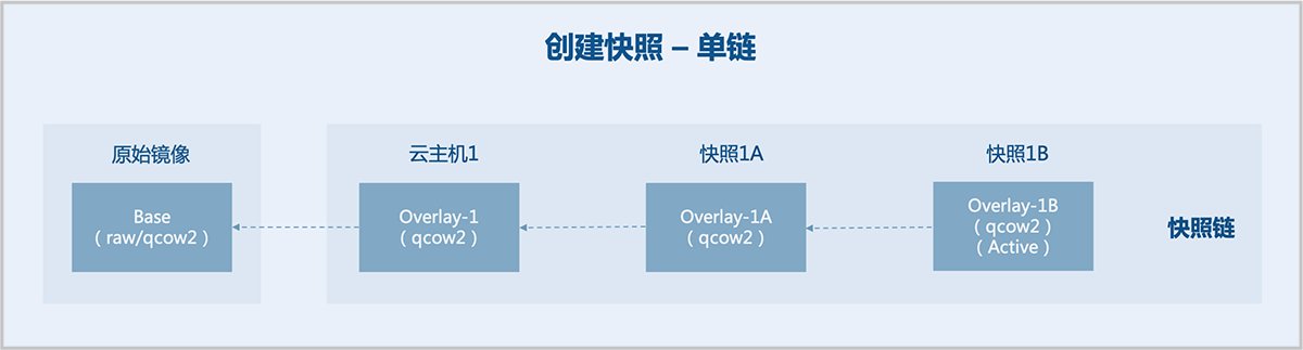 通常一块磁盘对应一条快照链,支持对一块磁盘创建一棵快照树,快照树的每一个分支都是一条快照链。