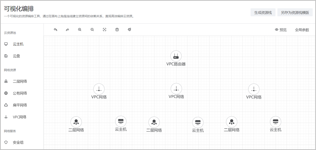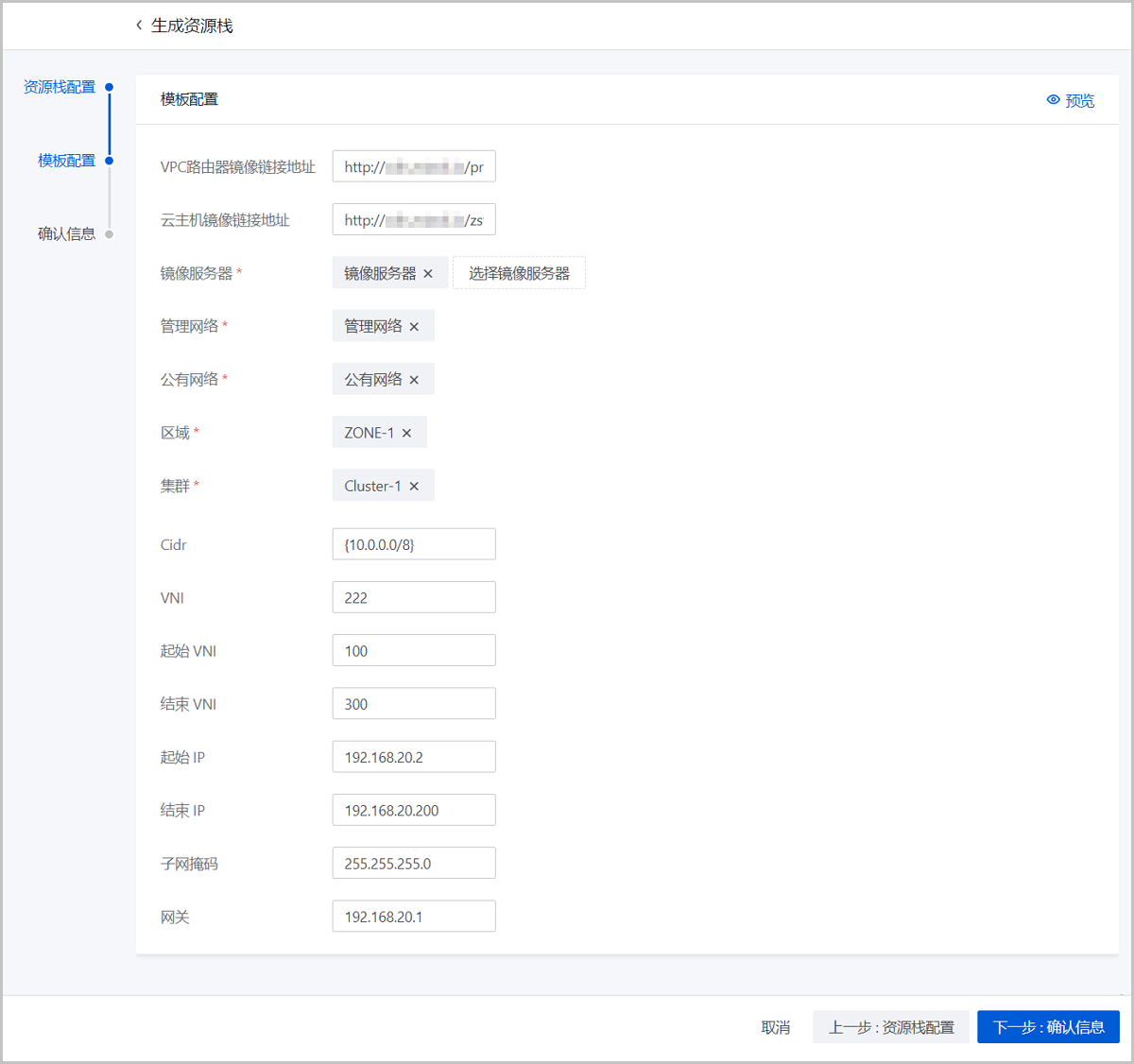 • 开始创建资源栈前,可点击预览查看将要创建的资源列表。