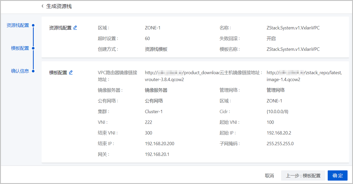 至此,使用ZStack.System.v1.VxlanVPC资源栈示例模板一键部署VXLAN类型的VPC网络已完成。