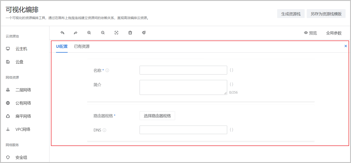 • 资源栈模板:使用系统模板或自定义模板创建资源栈