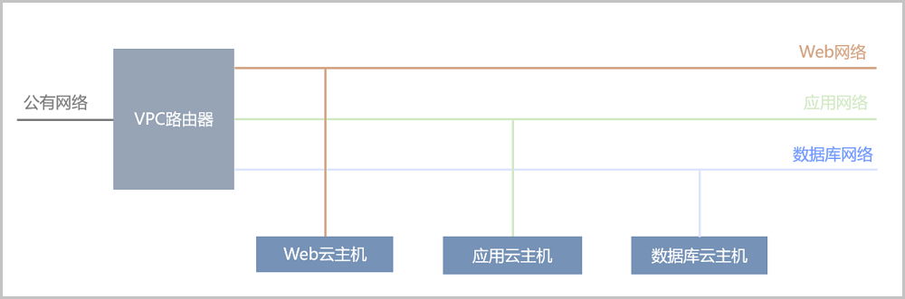 例如,可将Web云主机、应用云主机、数据库云主机分别部署在不同的网络层面,从而保证网络安全。