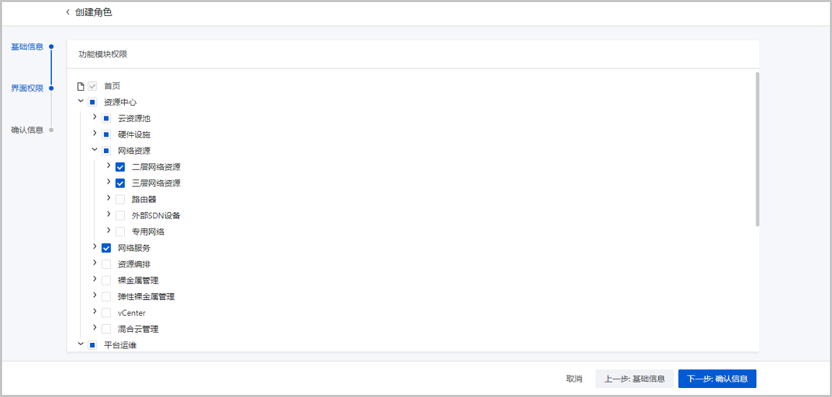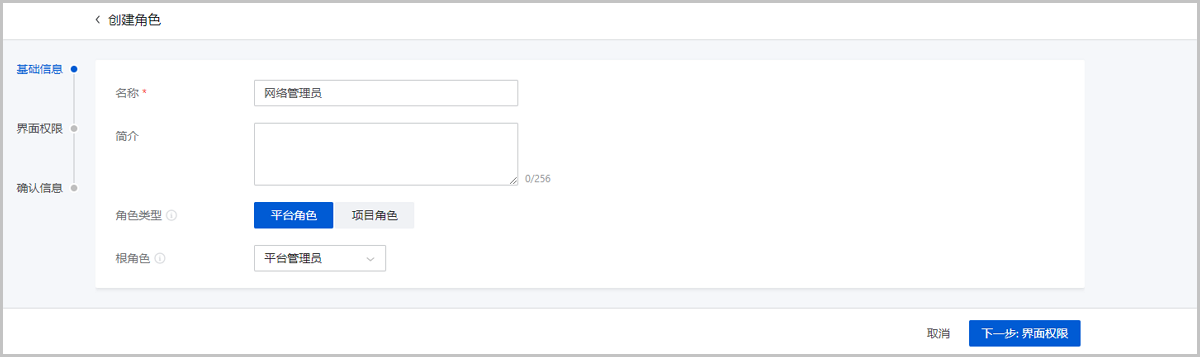 • 根角色:设置根角色,根角色用于限制自定义角色的权限范围,自定义角色的权限继承自根角色,为根角色权限的子集。