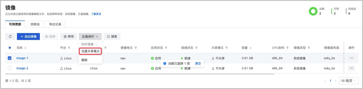 为了保证项目正常使用,需要全局共享云盘规格、计算规格、镜像、私有网络/VXLAN Pool等基本资源。