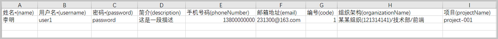 说明: 本示例场景中,项目列暂时留空不填;简介、邮箱地址、手机号码、编号可按需填写。