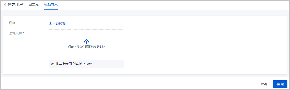 创建用户界面,添加方式选择模板导入,操作步骤如下: