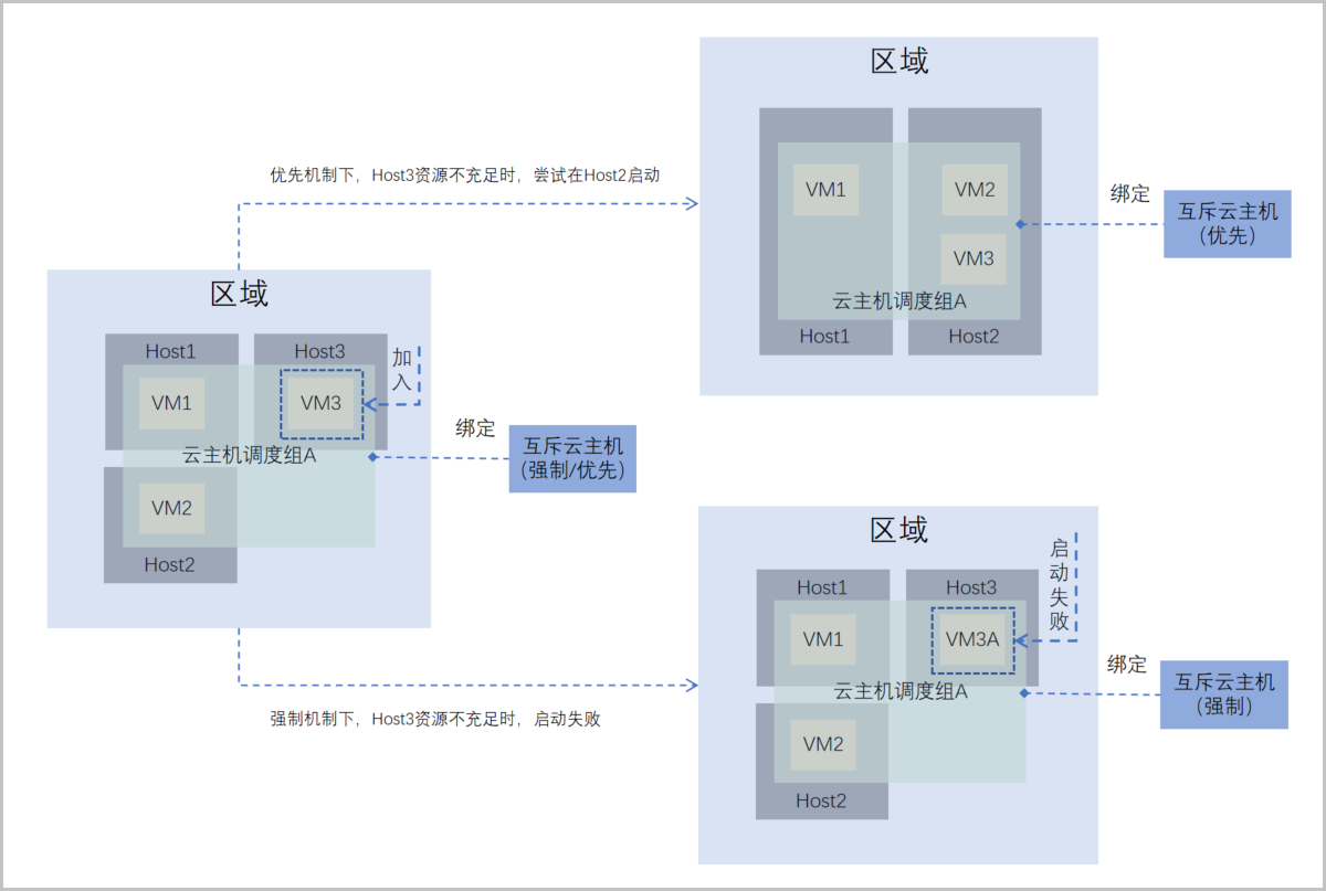 • 强制机制下,云主机VM3遵循与物理机调度组A内的物理机强制互斥原则: