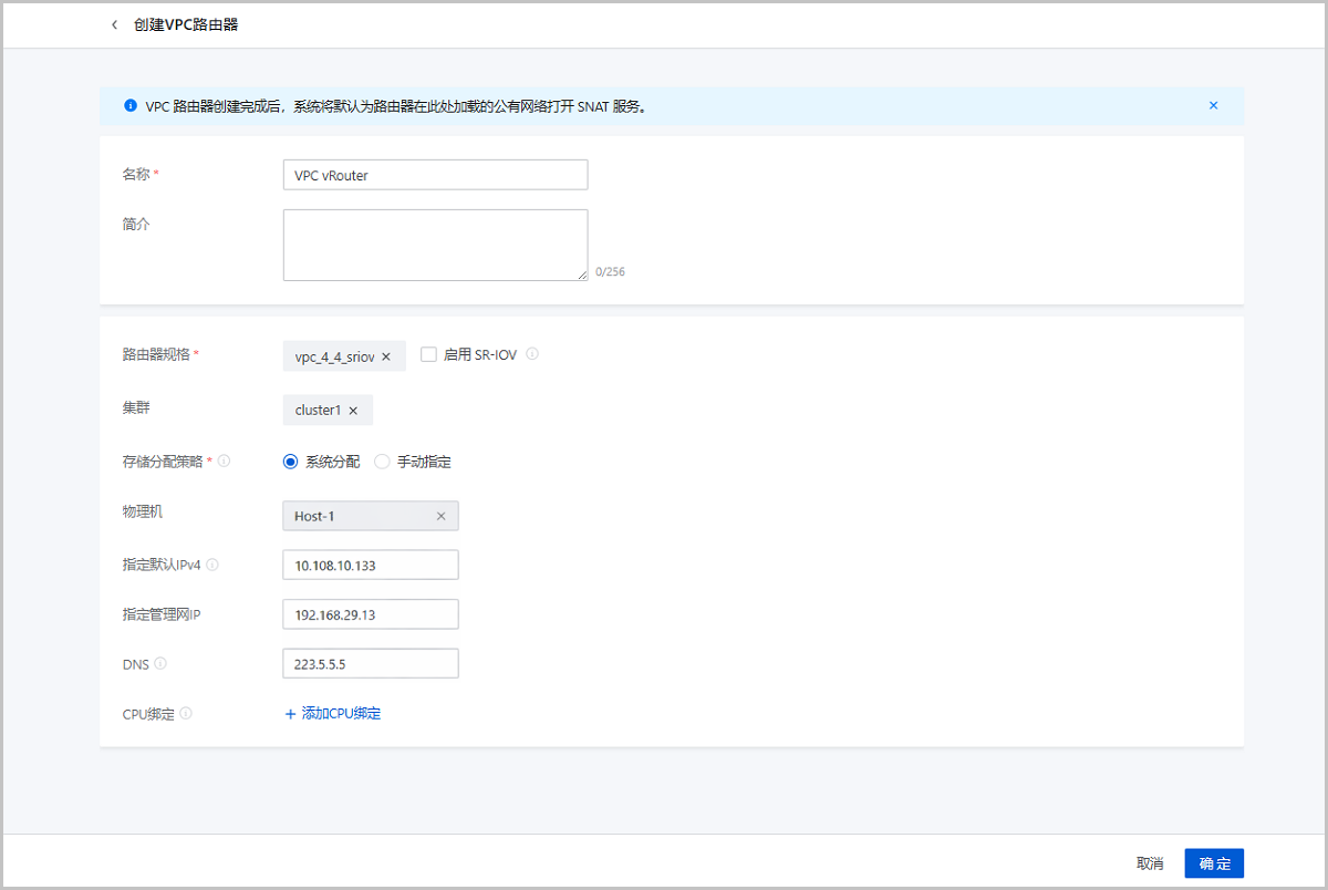 在ZStack Cloud主菜单,点击,进入路由器规格界面,点击创建路由器规格,弹出创建路由器规格界面。